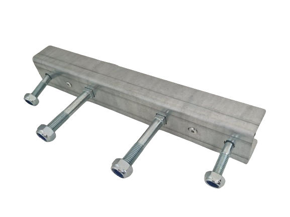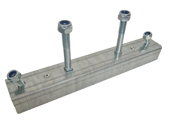 Pozinkovaný držák na upevnění náhradního kola i se spojovacím příslušenstvím.