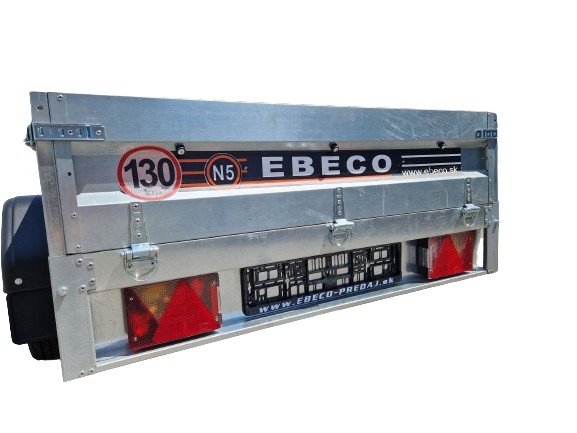 EBECO N5 – Jednonápravový sklápací NEBRZDĚNÝ přívěs – zesílená náprava do 1350 kg – 40cm BOČNICE
