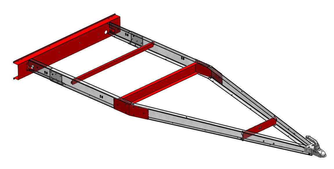 Je použita vysocepevná ocelová konstrukce z ohýbaných profilů ve tvaru U o tloušťce 3 mm s povrchovou úpravou – žárový zinek. Tím je zajištěna dlouhá životnost. Všechny naše přívěsy projdou zátěžovým testem.