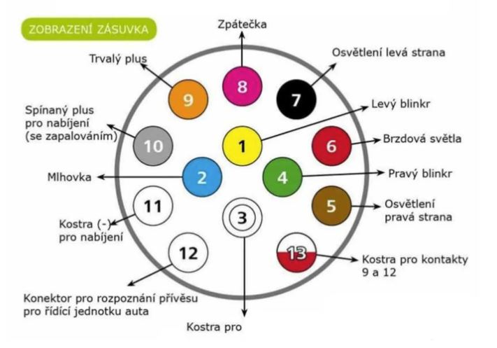 Kabel na světlo Aspock – 13 pólový je určen jako náhradní díl pro všechny typy přívěsných vozíků a je možné ho nahradit 7 pólovým kabelem.