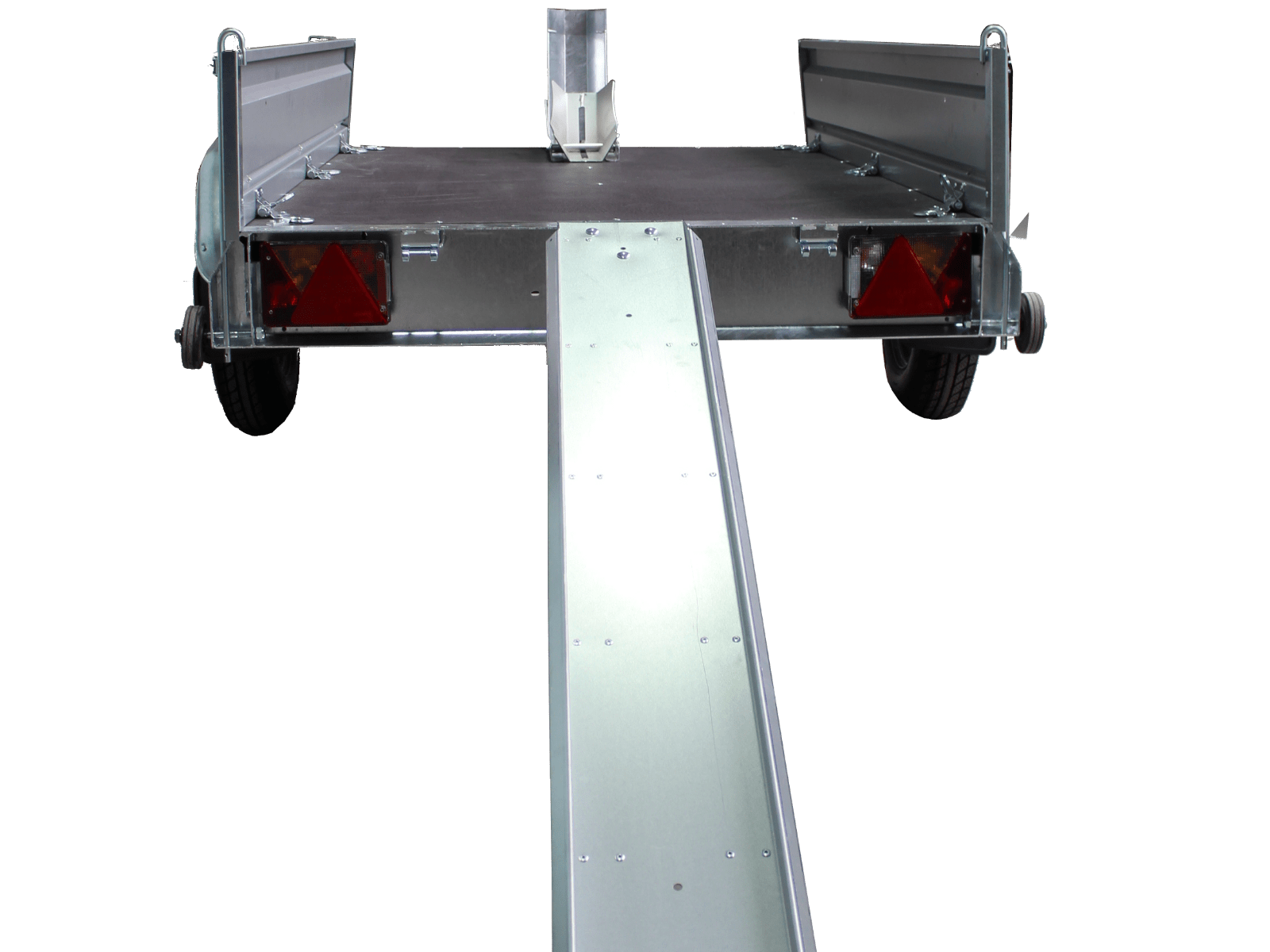 - Rampa je vybavena zajišťovacími kolíky proti sklouznutí z přívěsu
